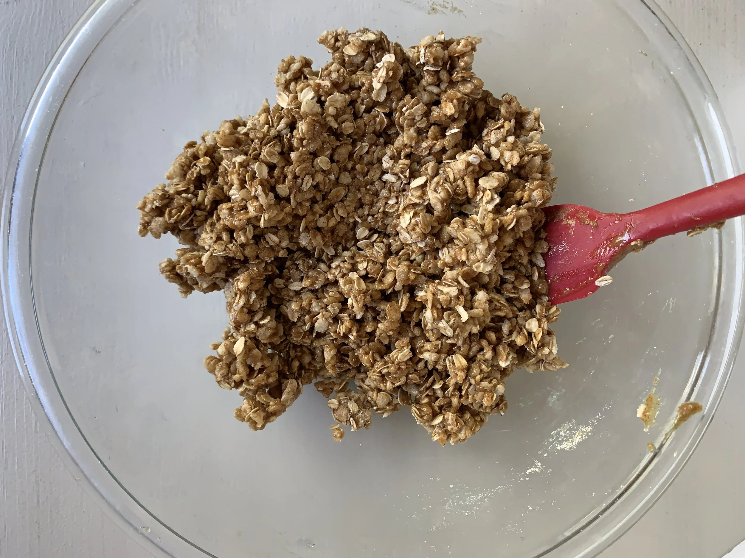 - Pour liquid mixture over oat mixture. Stir until well combined. Let sit for 5-10 minutes.